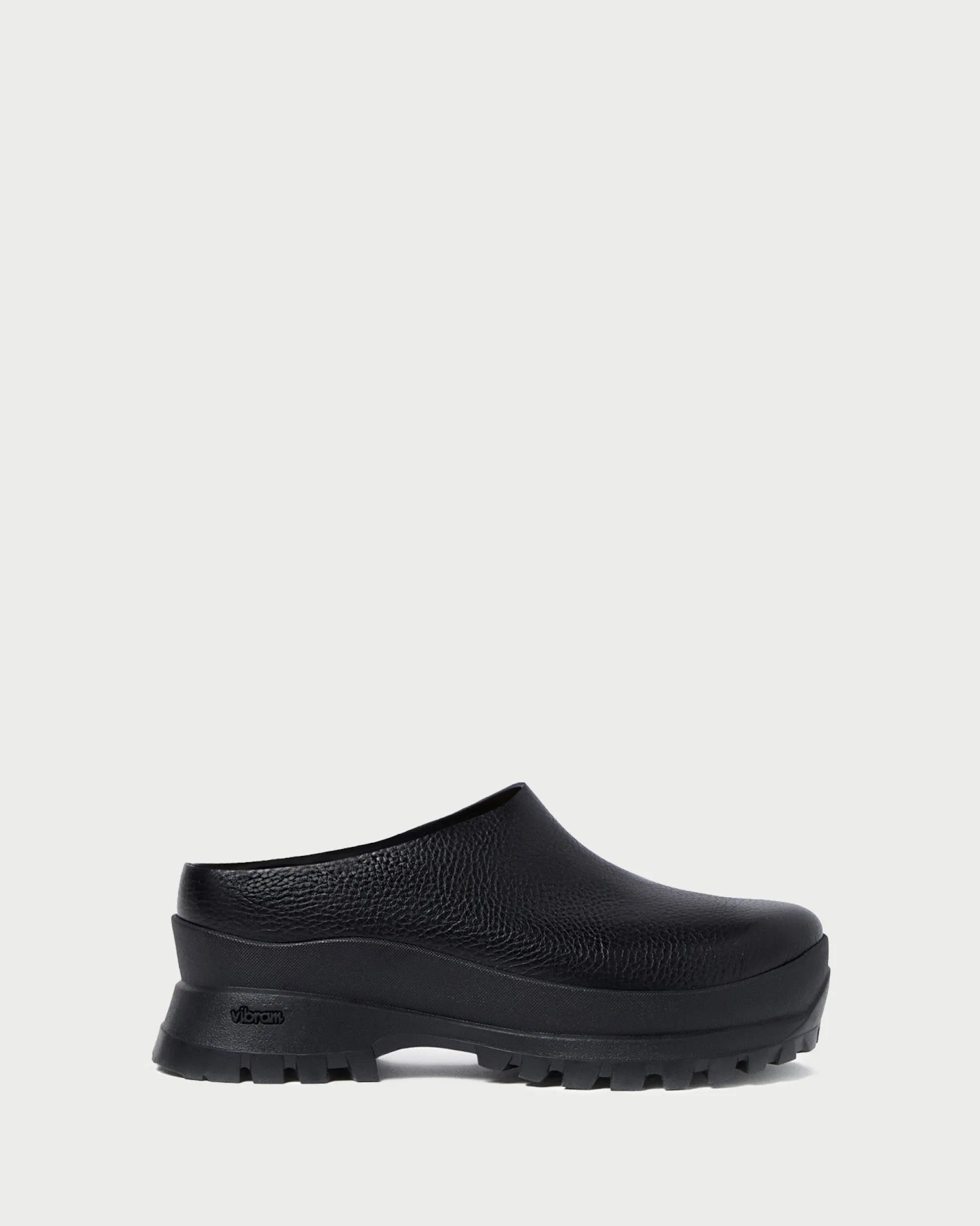 Welcome to Loeffler Randall. Discover our collection of beautiful, handcrafted styles from shoes to RTW to accessories. |Mule in black pebbled leather. Features a padded leather footbed with gold stamped logo, a lug sole, and a rounded toe. 1-inch heel.|Avoid prolonged exposure to water. Use a leather conditioner to maintain appearance.|Mule in black pebbled leather. Features a padded leather footbed with gold stamped logo, a lug sole, and a rounded toe. 1-inch heel.