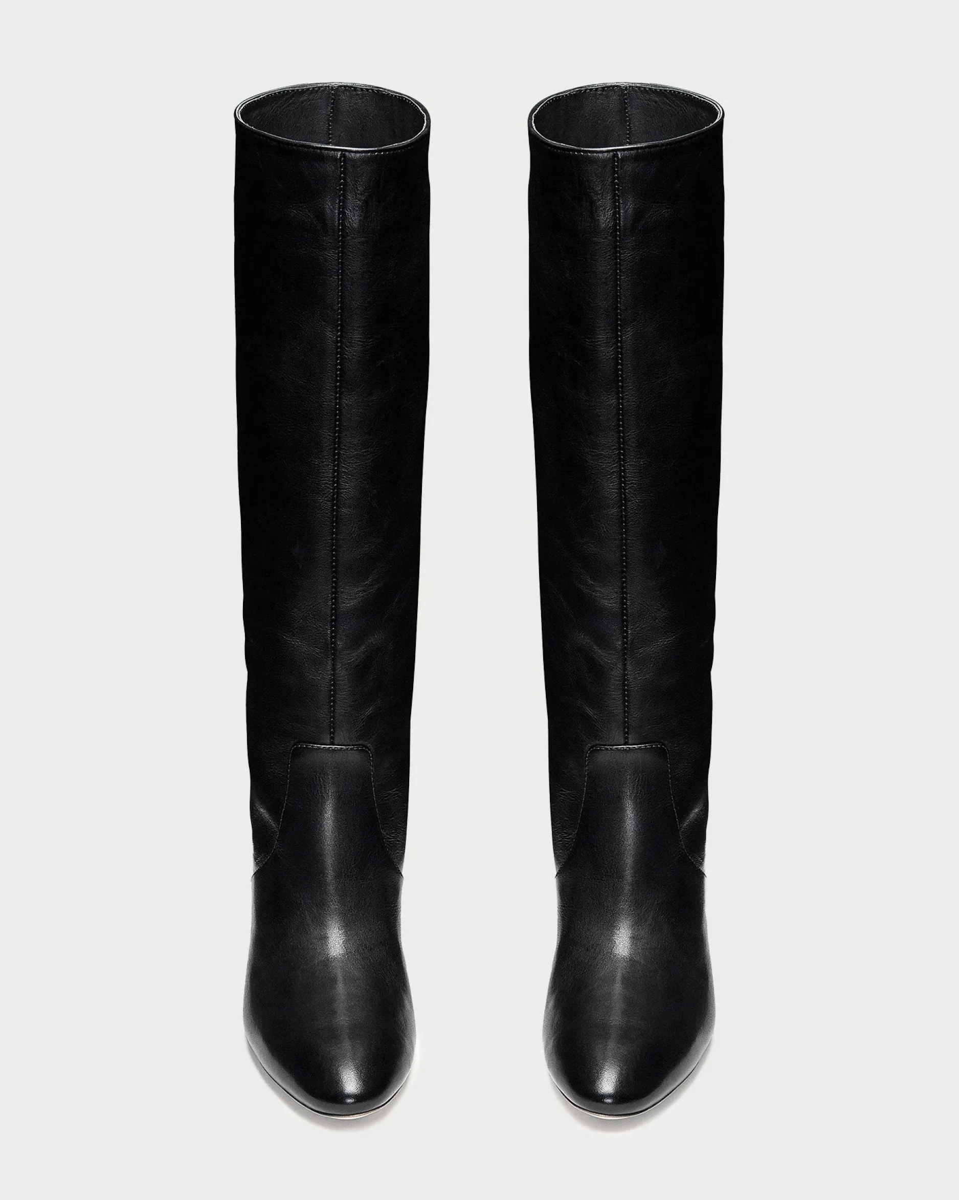 Welcome to Loeffler Randall. Discover our collection of beautiful, handcrafted styles from shoes to RTW to accessories. |u003cpu003eTall shaft boot with mid-heel in black soft calf leather. Padded footbed with gold stamped logo. Almond toe, pulls on. 2 inch heel.u003c/pu003e|This style is made with a beautiful, carefully-selected vachetta leather. We love vachetta for its tonal variations, as well as for its ability to develop a rich, gorgeous patina as it ages. This material might feature marks and veins—these are not considered imperfections, but rather a feature, as each pair is unique. To care for your boots, avoid contact with water, store carefully to prevent scratching, and use a leather conditioner to maintain appearance.|Tall shaft boot with a low heel in cognac brown vachetta leather. Features a padded footbed with gold stamped logo. Almond toe, pulls on. 2 inch heel.|This style is made with a beautiful, carefully-selected vachetta leather. We love vachetta for its tonal variations, as well as for its ability to develop a rich, gorgeous patina as it ages. This material might feature marks and veins—these are not considered imperfections, but rather a feature, as each pair is unique. To care for your boots, avoid contact with water, store carefully to prevent scratching, and use a leather conditioner to maintain appearance.|||u003cpu003eTall shaft boot with a low heel in espresso brown Italian vachetta leather. Features a padded footbed with gold stamped logo. Almond toe, pulls on. 2 inch heel.u003c/pu003e|This style is made with a beautiful, carefully-selected vachetta leather. We love vachetta for its tonal variations, as well as for its ability to develop a rich, gorgeous patina as it ages. This material might feature marks and veins—these are not considered imperfections, but rather a feature, as each pair is unique. To care for your boots, avoid contact with water, store carefully to prevent scratching, and use a leather conditioner to maintain appearance.|Tall shaft boot with mid-heel in black soft calf leather. Padded footbed with gold stamped logo. Almond toe, pulls on. 2 inch heel.