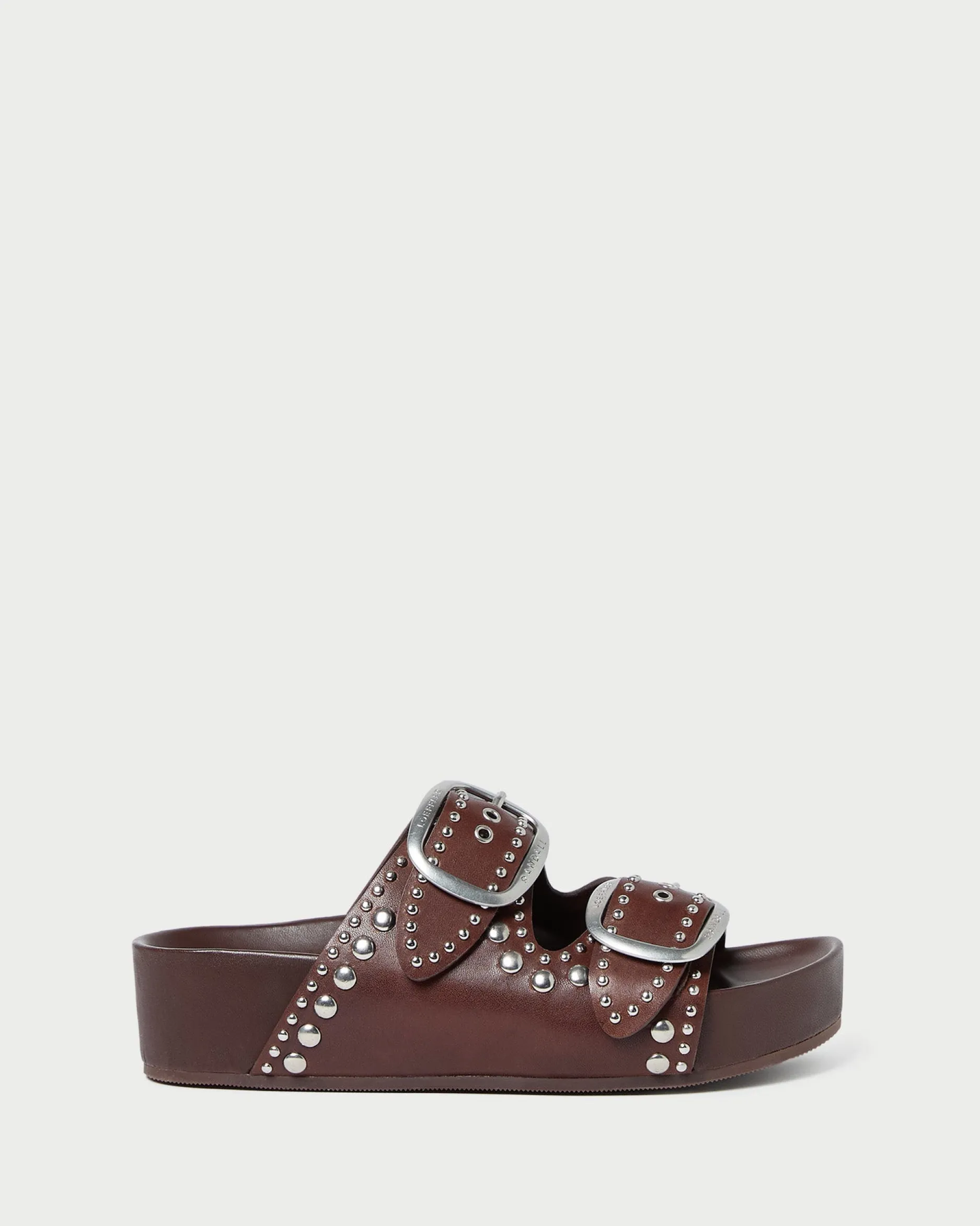 Welcome to Loeffler Randall. Discover our collection of beautiful, handcrafted styles from shoes to RTW to accessories. |Two-band platform footbed sandal in espresso Italian vachetta leather with nickel stud detailing. Features a padded leather footbed with gold stamped logo and an open toe. Slips on. 1.5-inch platform.|Refurbish seasonally or as needed by a professional. For best results, avoid consistent exposure to water.|Two-band platform footbed sandal in saffron-hued Italian split suede with nickel stud detailing. Features a padded leather footbed with gold stamped logo and an open toe. Slips on. 1.5-inch platform.|Suede is delicate. It should be kept away from water and stored in a dust bag to avoid matting. Suede fibers can be restored with a suede sponge or brush, and refurbished seasonally or as needed by a professional.|Two-band platform footbed sandal in espresso Italian vachetta leather with nickel stud detailing. Features a padded leather footbed with gold stamped logo and an open toe. Slips on. 1.5-inch platform.