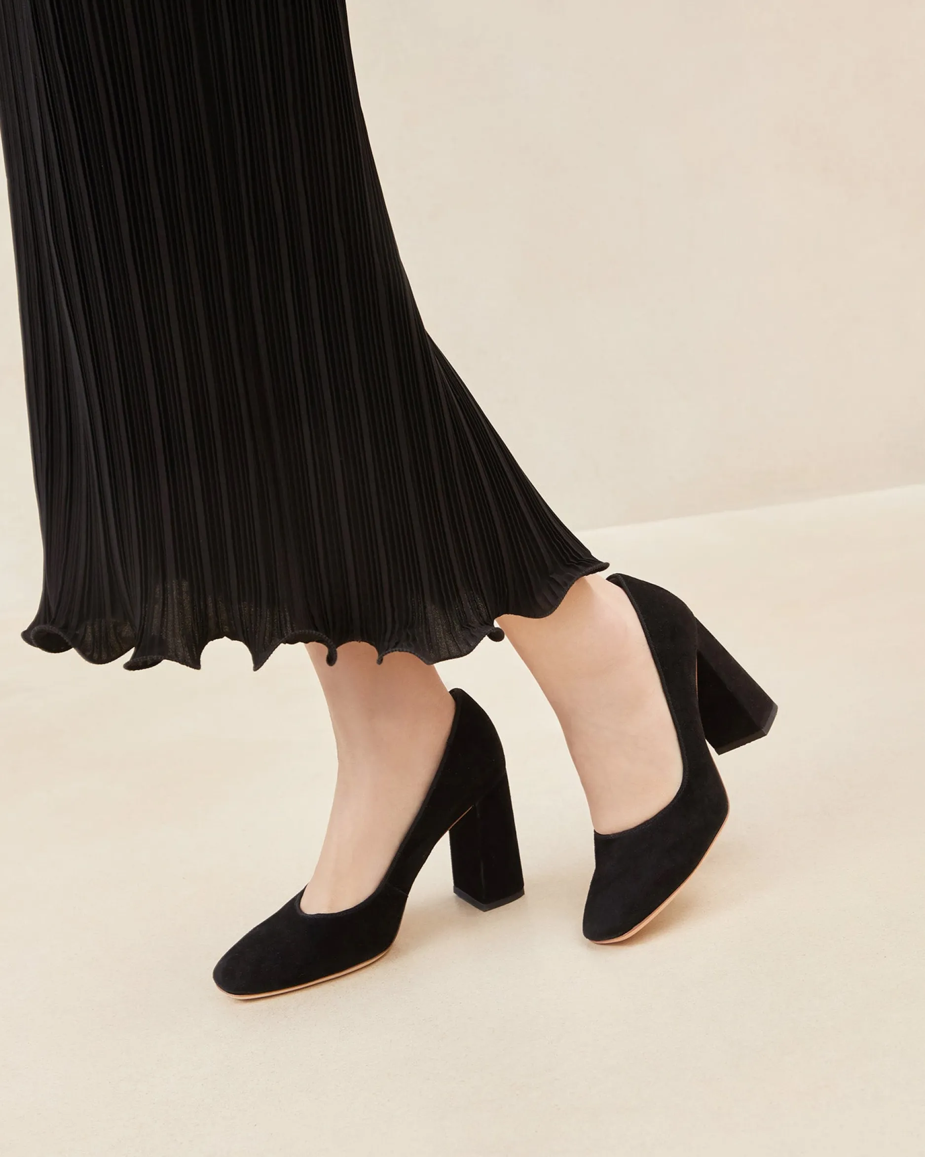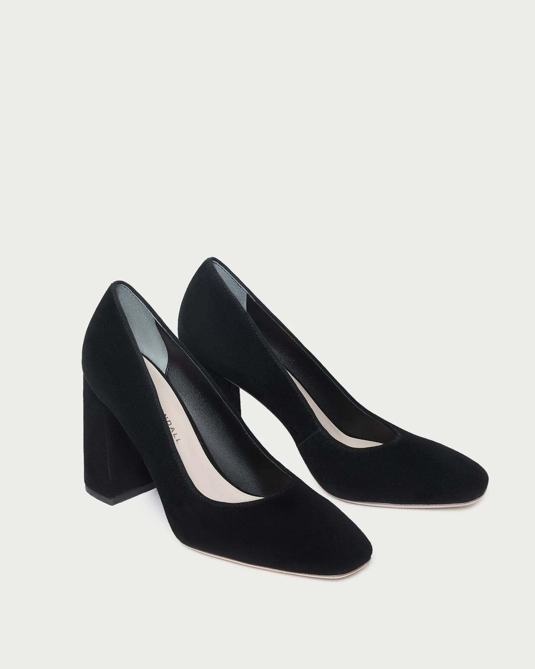 Welcome to Loeffler Randall. Discover our collection of beautiful, handcrafted styles from shoes to RTW to accessories. |High-heel pump in black kid suede. Features a padded leather footbed with gold stamped logo, block heel, and pointed toe. 3.5-inch heel.|Suede is delicate. It should be kept away from water and stored in a dust bag to avoid matting. Suede fibers can be restored with a suede sponge or brush, and refurbished seasonally or as needed by a professional.|High-heel pump in sienna velvet — a rich, earthy brown. Features a padded leather footbed with gold stamped logo, block heel, and pointed toe. 3.5-inch heel.|Avoid matting or crushing the velvet. The fabric can be preserved with water and/or a stain protector|High-heel pump in black kid suede. Features a padded leather footbed with gold stamped logo, block heel, and pointed toe. 3.5-inch heel.