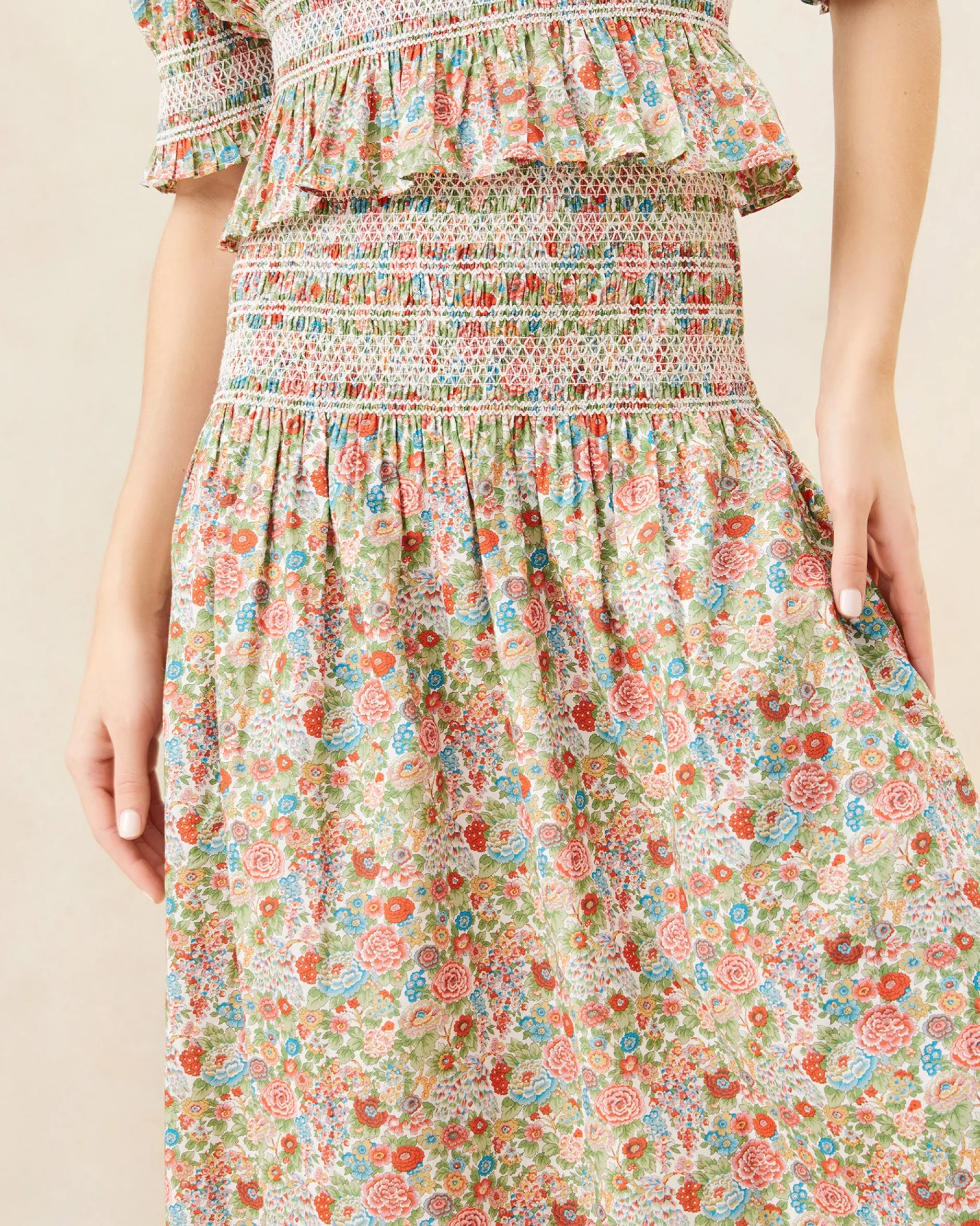 Welcome to Loeffler Randall. Discover our collection of beautiful, handcrafted styles from shoes to RTW to accessories. |Midi-length skirt in cream mini floral swiss dot–printed cotton. Features smocking at the waist. Pairs beautifully with the matching Nicola top.|Dry clean only.|Midi-length skirt in red, cream, and green multicolor floral-printed cotton. Features smocking at the waist. Pairs beautifully with the matching Nicola top.|Dry clean only.|Midi-length skirt in cream mini floral swiss dot–printed cotton. Features smocking at the waist. Pairs beautifully with the matching Nicola top.SizeXSSMLXLLength34.5"35"35.5"36.5"37.5"Waist21"23"25"27"29"